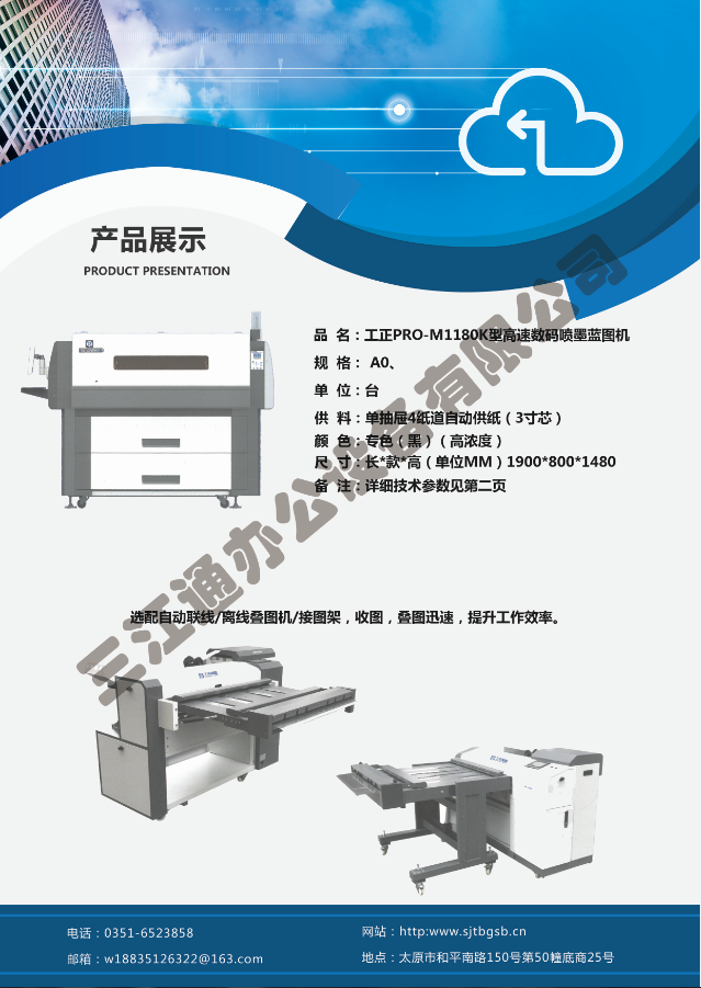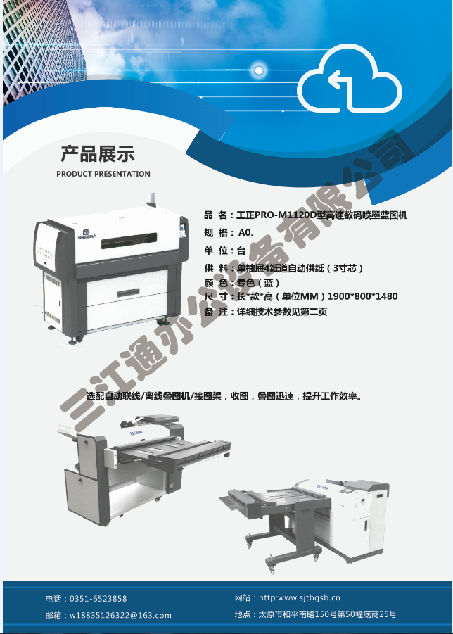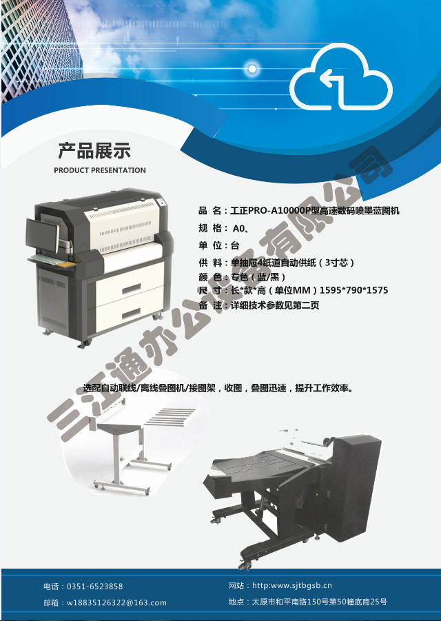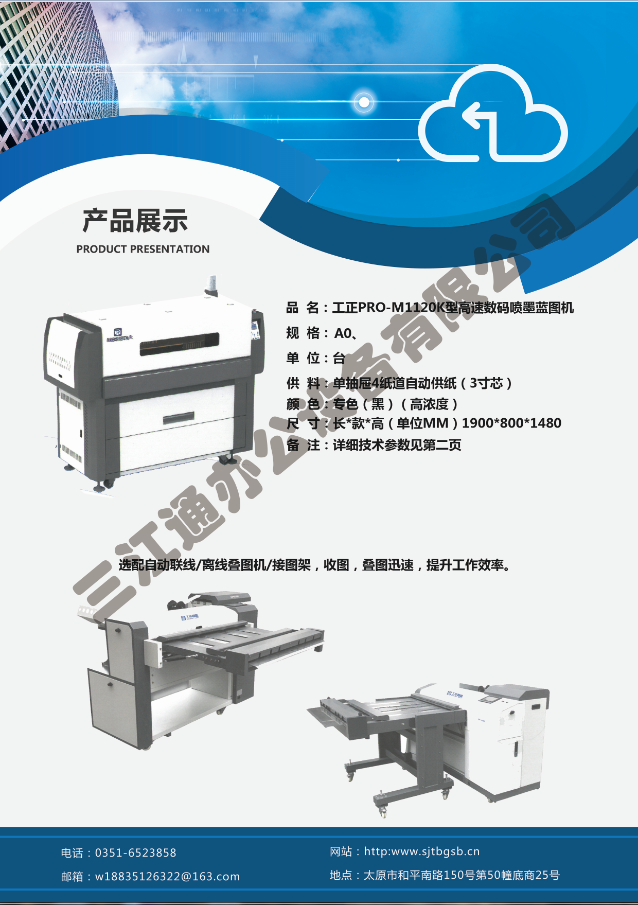 太原市三江通辦公設(shè)備有限公司是一家專業(yè)從事曬圖機(jī)、數(shù)碼復(fù)印機(jī)、多功能打印、復(fù)印、掃描、縮放一體機(jī)、模擬工程復(fù)印機(jī)、繪圖儀、大型掃描儀、電子歸檔設(shè)備、手動(dòng)、自動(dòng)成形圖紙檔案密集柜、圖前圖后設(shè)備以及所有制圖設(shè)備耗材供應(yīng)、維修一條龍的實(shí)體企業(yè)。多年來,已與日本、北京、天津、上海、杭州等諸多家廠方多方合作,成為山西>>更多